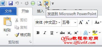 这样“发送到Microsoft PowerPoint”命令即被添加到快速访问工具栏中。单击该命令即可将Word文档中的内容发送到一个新建的PowerPoint演示文稿中。