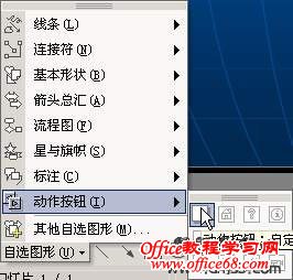PowerPoint广泛的应用于很多领域的演示,近年来已成为学校老师进行多媒体教学的重要工具,但是对于一般的老师来说,要制作反映真实规律的理科图像或动画还是有些困难。 用过几何画板的人都知道,该软件提供的很多专业功能是非常强大的,但是很多界面处理功能欠缺。 如果能够将两者结合起来,可以相得益彰,制作出几乎完美的课件。 首先,要安装这两个软件,然后将PowerPoint和几何画板文件各自制作完毕,在PowerPoint中打开绘图工具栏中的“自选图形-动作按钮”,选择“开始”按钮,如图: