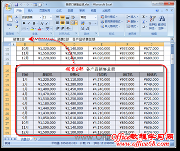 图1 为单元格区域命名 (2)打开需要添加超链接的幻灯片,并选中需要添加超链接的文字,按【Ctrl】+【K】组合键,打开“插入超链接”对话框。在左侧导航栏中单击【原有文件或网页】按钮,然后在“查找范围”下拉列表框中找到Excel文件所在位置,并将其选中,此时地址栏中将自动填充该工作簿的完整路径,然后在此路径最后输入“!销售部!销售2部”,即工作表及单元格区域名称,如图2所示。