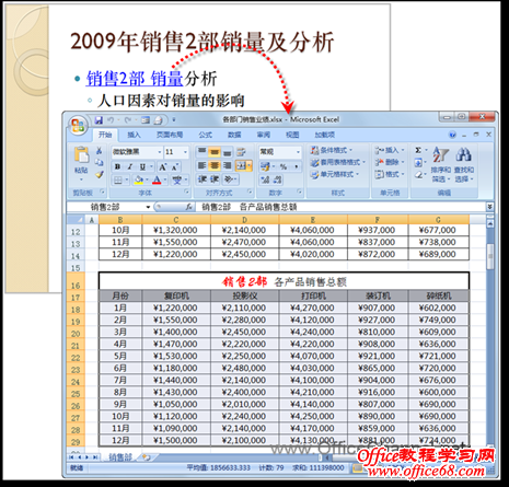 图3 通过幻灯片中的超链接显示工作簿中指定位置中的数据 |