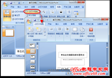 2)在“视图”选项卡的“演示文稿视图”选项组中,单击【幻灯片母版】按钮,从而进入“幻灯片母版”编辑视图,如图1所示。
