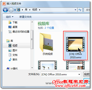 图1 文件中的视频 2. 在随即打开的“插入视频文件”对话框中,导航到存储产品视频资料的文件夹中,双击所需的产品介绍视频文件,即可将其插入到当前幻灯片中,如图2所示。