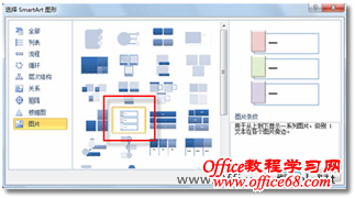 3. 在“图片”布局中,浏览并选择一种合适的图形布局(可在右侧的预览窗格中预览图形效果及应用说明),如,选择“图片条纹”,如3所示。