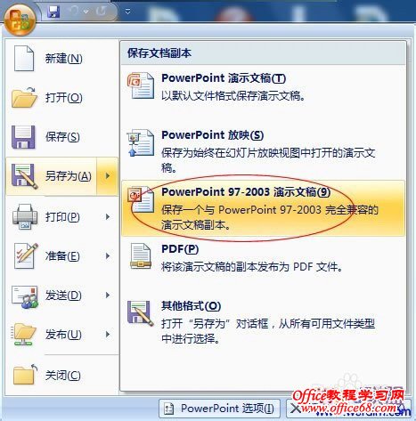 3. 在OFFICE 2007中将pptx格式转化为ppt