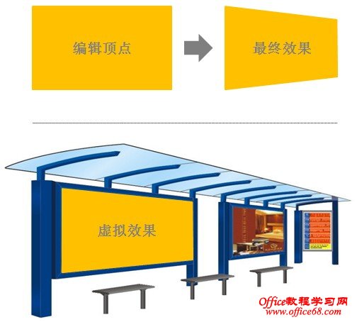 插入自选图形,右键选择“编辑顶点”功能,按照上图描点,编辑出类似的不规则图形。 最终的虚拟效果非常直观,对于提前评估投放效果有一定的认识。 |