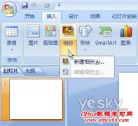 使用PowerPoint2007的相册功能,我们可以很轻松地将自己的照片制作成带音乐的动态相册。下面就一起来试试吧! 在PowerPoint2007的插入选项卡中点击相册-新建相册。 图示:PowerPoint2007新建相册 在创建相册的对话框中点击文件/磁盘按钮。 图示:PowerPoint2007 插入照片 从电脑本机的文件夹中选择需要插入的相片。因为图...