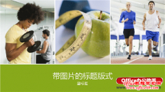 PPT2013模板 - 健身演示文稿(宽屏): 将该模板添加到健身计划中。该模板的标题幻灯片上有 3 张照片:一个人举重和两个人跑步,宣传锻炼观念;苹果和卷尺,宣传控制体重和健康饮食。按原样使用这些照片或替换为自己的照片。此演示文稿中的内容幻灯片包括示例图表、表格和 SmartArt 图形,用来说明锻炼类型、受影响的肌肉和燃...
