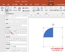 具体操作如下: 首先插入一个不完整的圆,将其调整25%的饼图效果。如下图所示。 接着复制一份这个圆,然后在插入一个圆角矩形,注意矩形的圆角与圆的相切的部分。 接着利用拆分和组合操作。得到下列图形。注意看动图操作。 接着在下图位置,用任意多边形绘制一个三角形即可。 绘制好了四象限的其中一个之后,剩下的就是复...