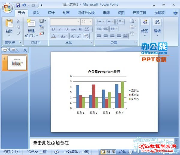 给图表添加标题,在PowerPoint2007中又如何进行操作呢?各位浏览办公族网站的朋友有福了,下面这篇文章会为你们解答。