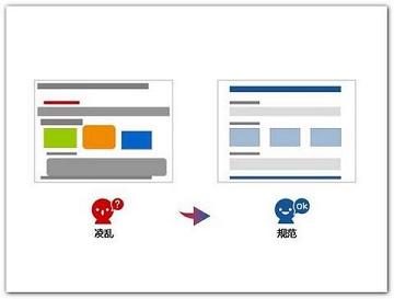 同看待任何事物一样,初级印象的好坏,相当程度上决定了我们“接受”或”抵触”。而PPT?设计中,规范化的版面和布局是建立良好印象的先决条件这就是为什么我们经常在看到国外一些资料的时候,发现“即使没有复杂的设计,仍然会感觉到专业”。 PPT中的标准设计包含文本,色彩,版式,和样式四个方面的规范化执行。在这些规范的指导下对页面内容中出现的模板,图示,图表,表格进行严格约定(打开一个PPT文档放映,看看每页标题位置是不是忽左忽右,大小各有不同?)