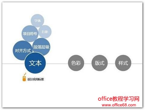 第四:样式规范 所谓样式即图示的风格,比如立体,平面,阴影,圆角,方角,渐变填充等等。网络海选的PPT模板,风格样式各不相同,独立的看很漂亮,拼凑在一起不伦不类,显得不够专业。再有图示拷贝过程中,色彩会适应当前模板的配色方啊,通常情况很少再去修改,所以导致深色填充背景上又 使用黑色的字体,浅色背景上使用白色的字体,观众很难识别。