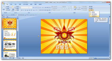 在 PowerPoint 中,也许大家平常可能并没有注意到选择窗格,在PowerPoint 2007/2010版本中,它在“开始——选择——选择窗格”中。虽然不太起眼,其实妙用多多,特别是在制作复杂多图层动画的时候,可以起到很大的作用,今天就为大家详细讲讲它的实用之处。