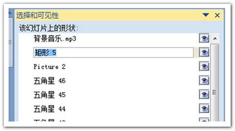 也许很多朋友会说,我在动画窗格中也可以很快进行对象重命名,但是在复杂的动画效果下很难准确的找到需要设置的元素对象,而选择窗格则提供了相对便捷准确的操作可能性,因为这些元素在动画窗格与选择窗格里是一一对应的。