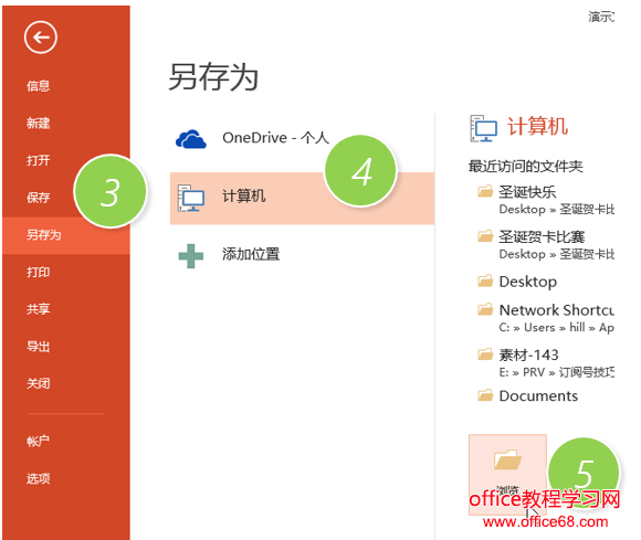 点击“另存为—计算机—浏览”按钮。(下图3处)