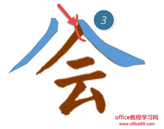 举例,将下图PPT中的”会”字,按笔画”拆掉”。