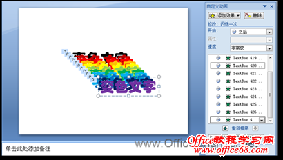 (6)复制第二个文本框,粘贴出多个相同的文本框(文本框的个数可根据颜色变化次数确定),并将文本颜色设置为间隔不同颜色,如图5所示。