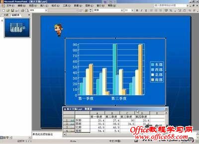 最后设置东部&西部&北部&南部的同时播放。在幻灯片编辑视图中选择“编辑”菜单中的“粘贴”命令,不进入图表编辑区,也不删除数据表中的数据。只是进行相应的“自定义动画”设置,区别是在“动画播放后”选项中选择“不变暗”。