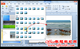 2)当前的视频看上去有些沉闷,在其外观上不够吸引人。此时,可切换到“视频工具”的“格式”上下文选项卡,在“视频样式”选项组的“视频样式库”中,轻松选择一种符合当前幻灯片风格的视觉样式。