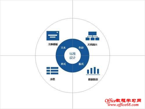 PPT中的标准设计包含文本,色彩,版式,和样式四个方面的规范化执行。在这些规范的指导下对页面内容中出现的模板,图示,图表,表格进行严格约定(打开一个PPT文档放映,看看每页标题位置是不是忽左忽右,大小各有不同?)