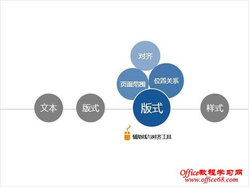 PPT版式的概念可以在幻灯片母板编辑视图下设置标题,内容,页脚的位置关系,此外的关键在于高效的利用辅助线(ALT+F9)和对齐工具,规范相关联的元素内容。