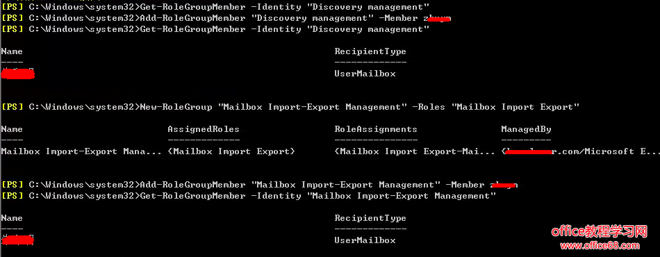 以上两种方法,有时候你会发现虽然清理了,但是用户的文件夹中都已经清空,包括已删除邮件文件夹中也已清空,但是用户的邮箱空间还是没有成功回收? 清空用户邮箱实现过程因Exchange2010采用了RBAC授权模式来进行邮箱管理,所以通过服务器端清理用户邮箱,需首先进行授权,下面来介绍整个实现过程: