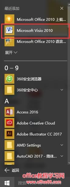 5. 等待安装完成后关闭界面,在电脑左下角home界面中找到Microsoft Visio 2010并点开