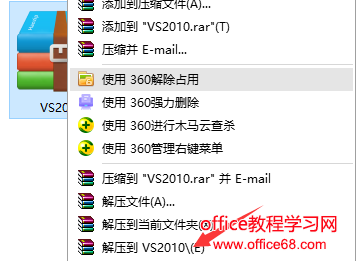 安装步骤: 1. 右击软件压缩包,选择解压到Visio2010