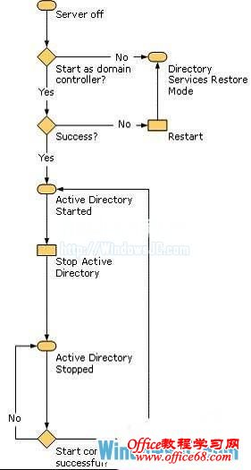 下面的流程图为我们展现了Windows Server 2008上的域控制器在三种可能的状态间的转变。