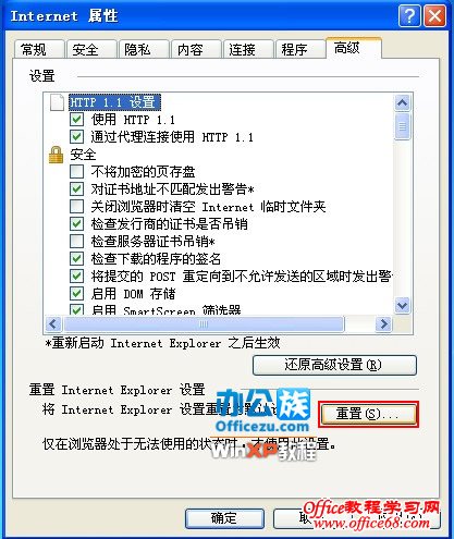 当WindowsXP用户碰到类似的故障,不要盲目的去删除注册表内的文件或是查毒,先重置下IE游览器看能不能解决此问题。