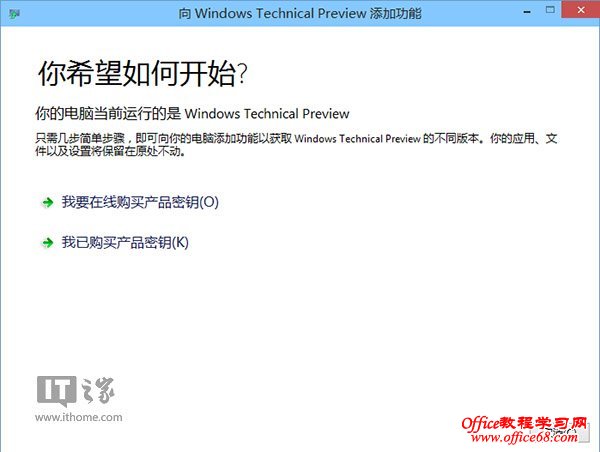 因 为该升级方法只是功能的解锁,并不需要重新安装,所以只需几分钟时间就可以完成升级过程。豆豆这里是在Windows Technical Preview版本中为大家演示的,当然这就意味着,应该还有比Windows Technical Preview更高的版本,可能是Windows Technical Preview with media center吧