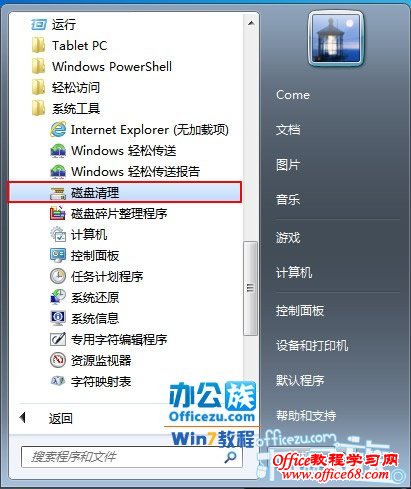 1 点击“开始”菜单→“所有程序”→“附件”→“系统工具”→“磁盘清理”。