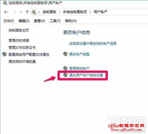 2.在打开的用户帐户窗口,点击【更改用户帐户控制设置】