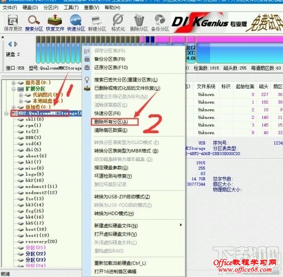 4.这3个备份做好后,可以把整个磁盘都删除,如图(点击删除所有分区)