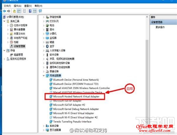 此时可参考下面的方法来解决: • 右键单击此电脑(或这台电脑/计算机)—管理—设备管理器,然后点击上面的查看,勾选“显示隐藏的设备”,然后在网络适配器下方找到Microsoft 托管网络虚拟适配器。