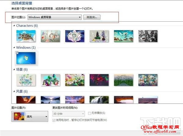 4、还有种是自己做一个简单的主题,就是用多张背景照片保存成一个主题点击桌面背景,按路径找到,你需要显示的图片位置,然后在下面勾选中,可以多选,然后保存修改。