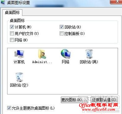3、最下面可以设置桌面背,当前窗口,对话框,任务栏的颜色。单击即可设置也可对声音和屏保图片进行设置,左侧一栏可以设置桌面图标,也就是选择系统默认的图标显不显示,设置鼠标指针就比较简单不是介绍了。