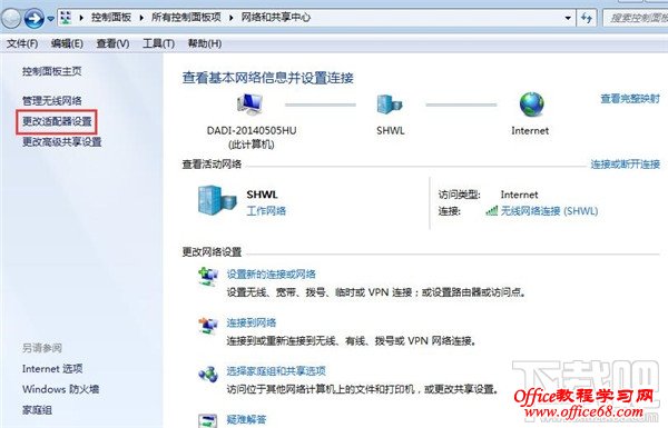 5、WiFi建立成功之后,需要打开网络和共享中心,点击左侧更改适配器设置;