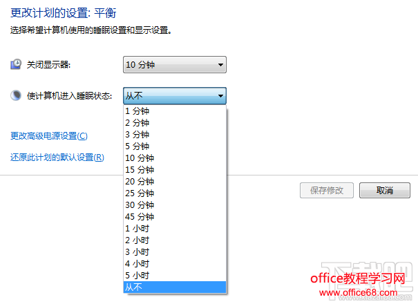 2、进入控制面板-电源选项-更改计算机睡眠时间,选择“从不”
