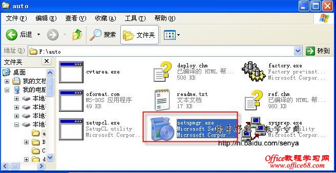 如上图,在Windows XP安装光盘SUPPORTTOOLS文件夹中找到DEPLOT.CAB文件,把它解压在某个分区的位置,找到setupmgr.exe程序: