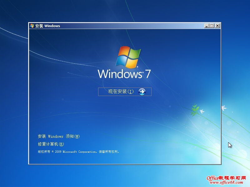 如下图,点击现在开始安装即可,本图是全新安装,所以没有看到升级界面上兼容测试等选项(如果从低版本Windows上点击安装就会有),这里还有个重要用途,下图中左下角有个“修复计算机选项”,这在Windows 7的后期维护中,作用极大。