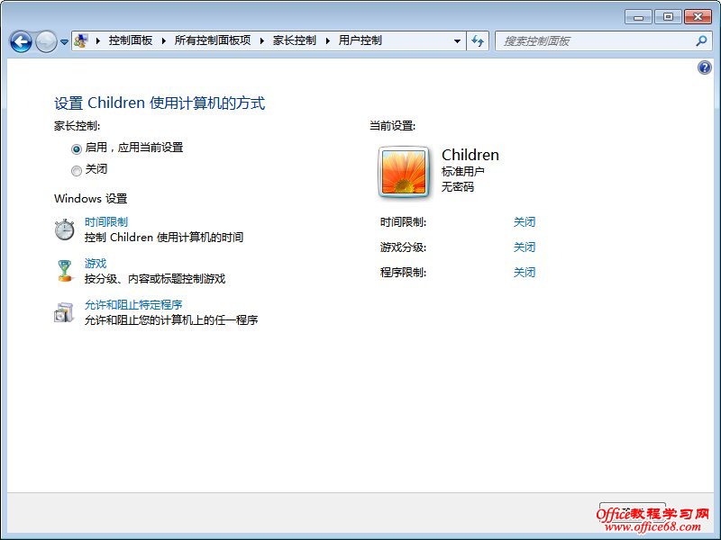 二、对该帐户进行家长控制设置,点击Children用户 设置图如下图3: