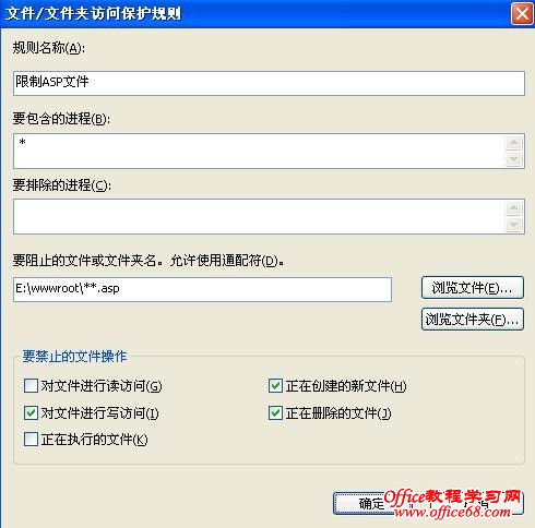 E:\wwwroot**.asp的意思是禁止在E:\wwwroot文件夹的所有目录创建,修改和删除任何ASP格式的文件.