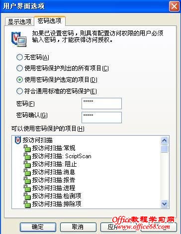 我们单击VirusScan控制台的文件菜单,选择用户界面选项,点击密码选项,