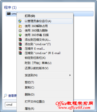 首先,单击开始菜单,在搜索框里输入CMD,并右键单击CMD,在弹出的菜单中单击“以管理员身份运行”,打开CMD。