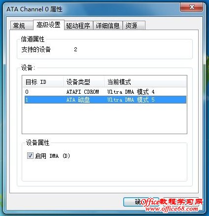 根据自己硬盘的接口位置双击对应的通道,弹出通道属性窗口,如下图,选择高级设置: