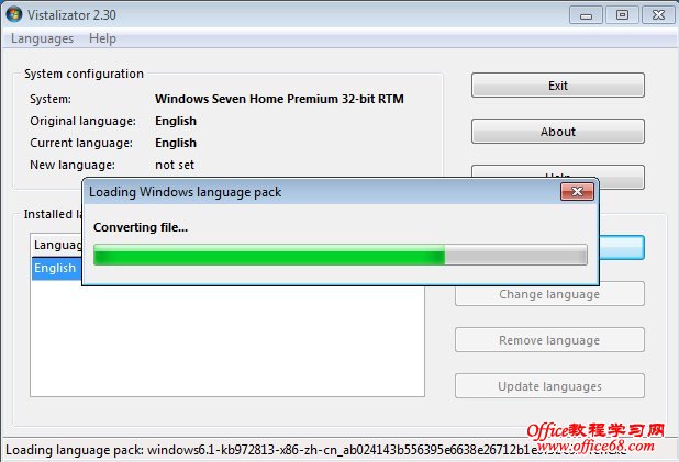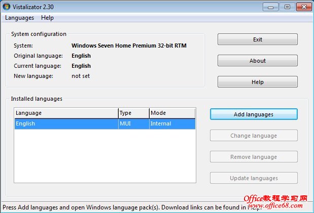 按照微软官方规定,非旗舰版的Vista/Windows 7都是不提供多语言升级切换的,所以要想升级更换语言包必须使用第三方工具,本文演示使用Vistalizator将Windows 7家庭高级版从英文语言显示更换为中文语言,Vista/Windows 7其它版本都可类似参考操作,包括Vista/Windows 7初级版、家庭基础版、家庭增强或称高级版、商业版、专业版等版本,天缘全文测试通过。