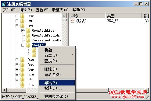 12、关闭各种视频格式预览(AVI、MPG、WMV、3GP、MP4、MPEG等) 打开注册表,在HKEY_CLASSES_ROOT里,找到对应的扩展名,然后把下面的ShellEx项删除,删除之前最好导出备份一下,如果想恢复只需要再次导入即可,如下图: