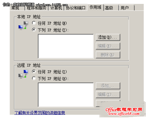 本地 IP 地址由本地计算机用于确定规则是否适用。规则仅适用于通过配置为使用一个指定本地 IP 地址的网络适配器的网络流量。任何 IP 地址,选择此选项可以指定匹配具有指定为本地 IP 地址的任意地址的网络数据包的规则。选中此选项时本地计算机始终匹配规则。下列 IP 地址,选择此选项可以指定规则匹配具有“本地 IP 地址”中指定的一个地址的网络流量。如果本地计算机没有使用一个指定 IP 地址配置的网络适配器,则规则不适用。在“IP 地址”对话框上,单击“添加”可以在列表中创建新条目,或单击“编辑”可以更改列表中的现有条目。还可以通过选择项目然后单击“删除”从列表中删除某个条目。 远程 IP 地址:指定应用规则的远程 IP 地址。如果目标 IP 地址是列表中的地址之一,则网络流量匹配规则。任何 IP 地址,此选项可以指定规则匹配发自(对于入站规则)或发往(对于出站规则)包含在列表中的任意 IP 地址的网络数据包。下列 IP 地址,选择此选项可以指定规则仅匹配具有“远程 IP 地址”中指定的一个地址的网络流量。在“IP 地址”对话 此外还需要将此防火墙规则应用到相应的配置文件和接口类型上,因此需要指定此规则所使用的配置文件,Windows 确定每个网络适配器的网络位置类型,然后对该网络适配器应用相应的配置文件。接口类型指的是单击“自定义”可以指定应用连接安全规则的接口类型。通过“自定义接口类型”对话框,可以选择“所有接口类型”或“局域网”、“远程访问”或“无线”类型的任意组合。最后一个需要介绍的就是边缘遍历。边缘遍历允许指的是计算机接受未经请求的入站数据包,这些数据包已通过诸如网络地址转换 (NAT) 路由器或防火墙之类的边缘设备。系统默认是阻止应用程序通过 NAT 边缘设备从 Internet 接收主动提供的流量。也可以设置为遵从用户或者是遵从应用程序,所谓遵从用户指的是让用户决定当应用程序请求通过 NAT 边缘设备从 Internet 接收主动提供的流量时是否允许该流量。遵从应用程序指的是让每个应用程序确定是否允许通过 NAT 边缘设备从 Internet 接收主动提供的流量。 |