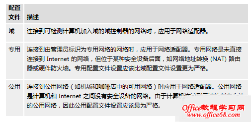 每个网络适配器也就是网卡,分配匹配所检测网络类型的防火墙配置文件。例如,如果将网络适配器连接到公用网络,则到达或来自该网络的所有流量会由与公用配置文件关联的防火墙规则筛选。 Windows Server 2008 R2 和 Windows 7 为每个活动网络适配器配置文件提供支持。在 Windows Vista 和 Windows Server 2008 中,每次计算机上只能有一个配置文件处于活动状态。如果存在多个连接到不同网络的网络适配器,则具有最严格配置文件设置的配置文件应用于计算机上的所有适配器。公用配置文件被认为是最为严格的,然后是专用配置文件;域配置文件被认为是最不严格的。 如果不更改配置文件的设置,则只要高级安全 Windows 防火墙使用配置文件,就应用其默认值。建议为所有三个配置文件启用高级安全 Windows 防火墙。 若要配置这些配置文件,请在高级安全 Windows 防火墙 MMC 管理单元中,右键单击“高级安全 Windows 防火墙”,然后单击“属性”。