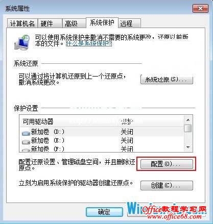 3、 选择“系统保护”,点击“配置”。